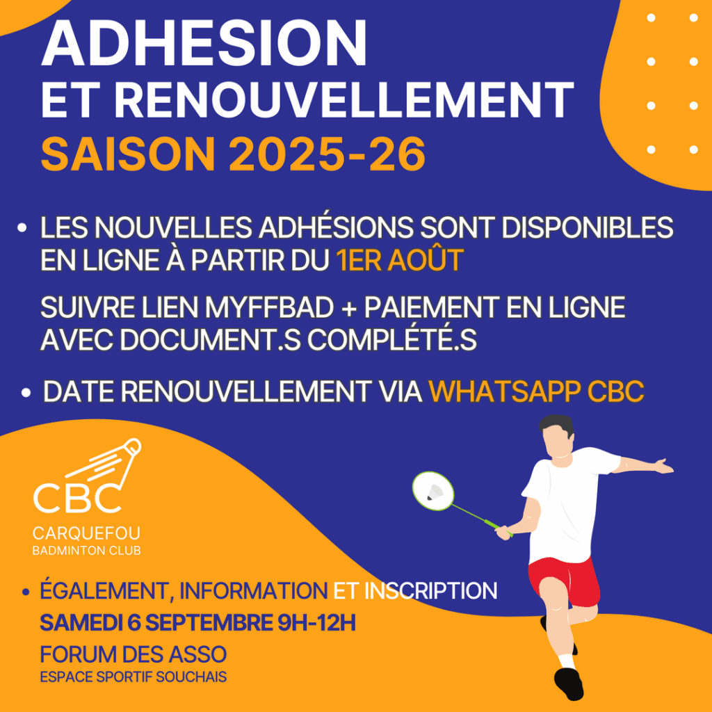 📣 Inscription et paiement en ligne depuis le lien myffbad.fr/club/3513.